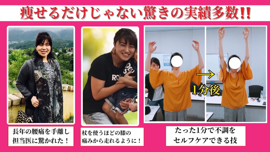 キレイになれるだけでなく、心身ともに健康になり、毎日が楽しくなりました。毎日の頭痛が早い段階でほぼ無くなった事が1番助かりました。